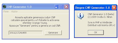 Generatorul de coduri CNP poate fi acum descărcat ca aplicaţie de sine stătătoare. E ideală de pus pe USB Stick deoarece nu depinde de o conexiune la internet, iar aplicatia este disponibilă atât pentru Windows cât şi pentru Linux (necesitând perl şi libgtk2-gladexml-perl).